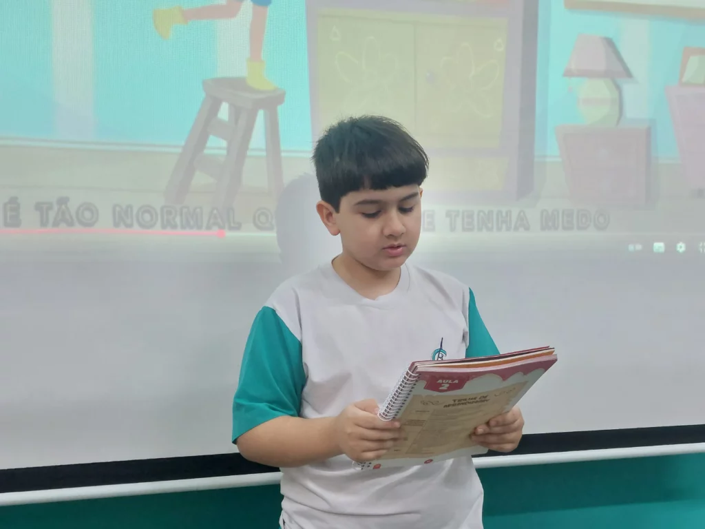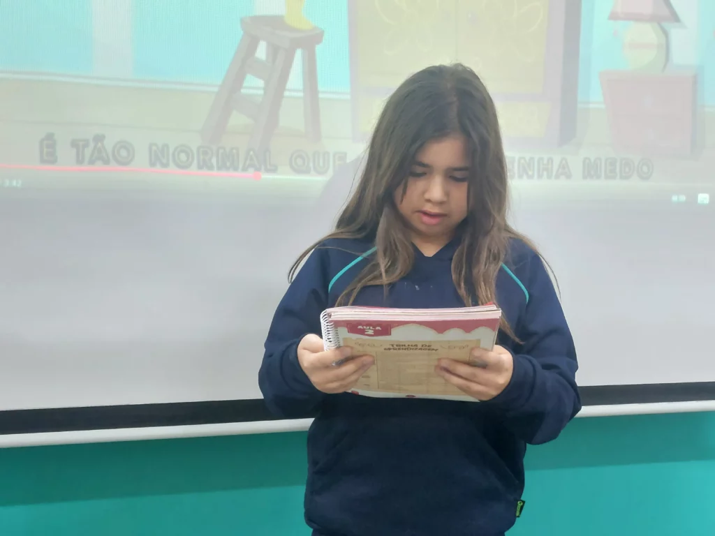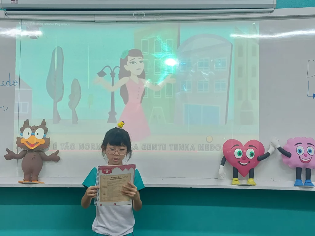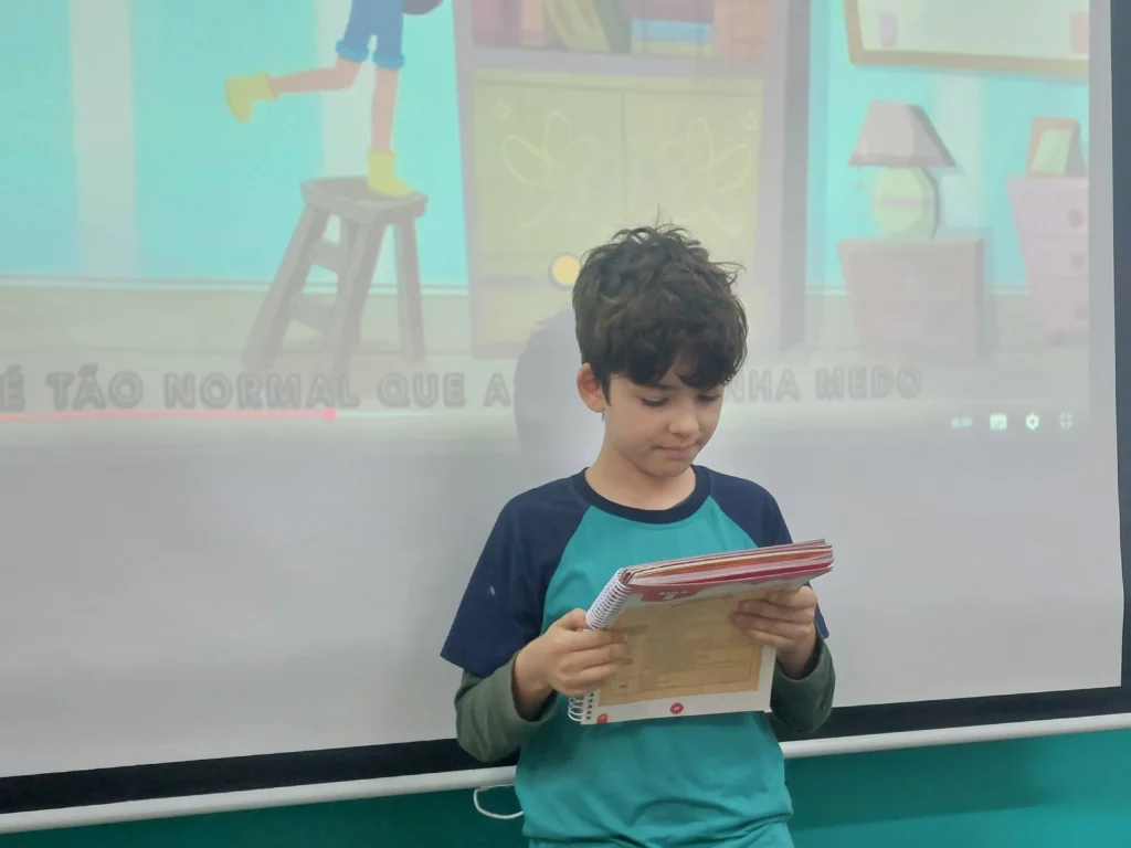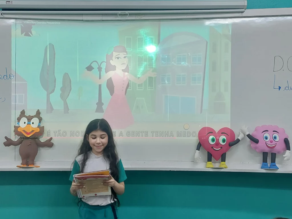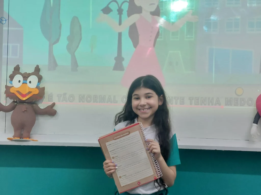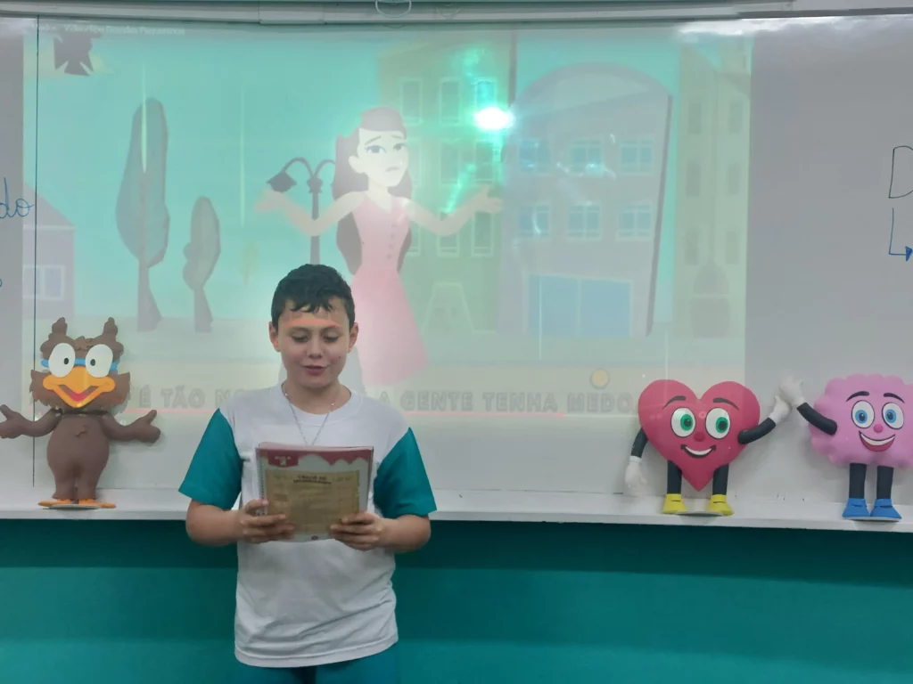 Nas aulas de Valores e princípios, em que as turmas do 4º ano tiveram o material da Escola da Inteligência com a Professora Alessandra Castilho, houve a possibilidade de explorar as variadas emoções em propostas interessantes, tais como o Bairro Medo. Ouvir histórias, refletir sobre a emoção, verbalizar situações em que envolve o que sentem diante do medo, entre outras propostas contribuíram para que cada criança pudesse analisar as próprias atitudes, transformando-as gradativamente nas mais saudáveis possíveis no determinado momento.