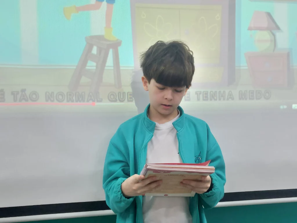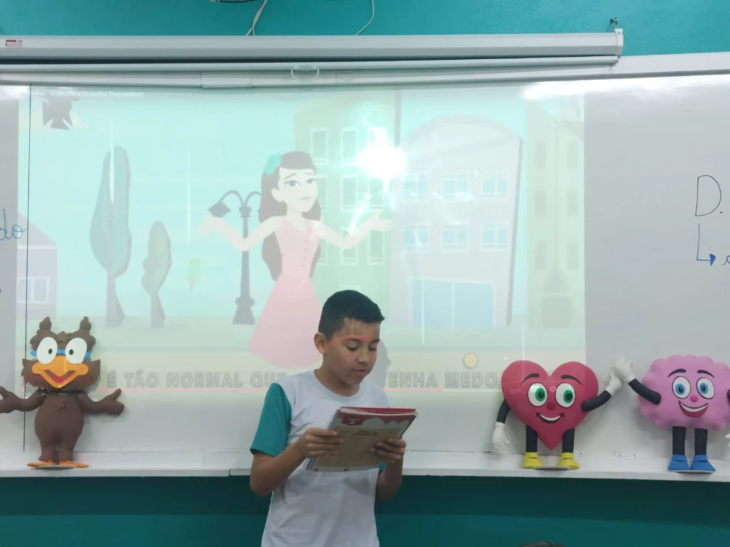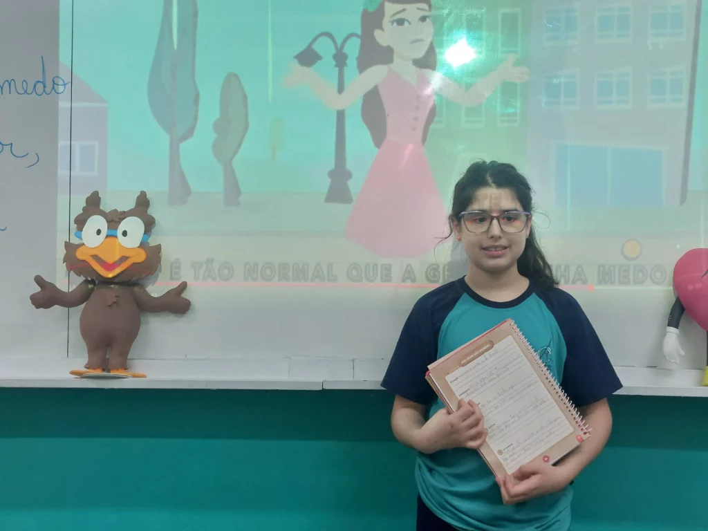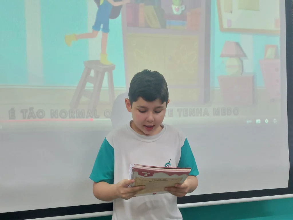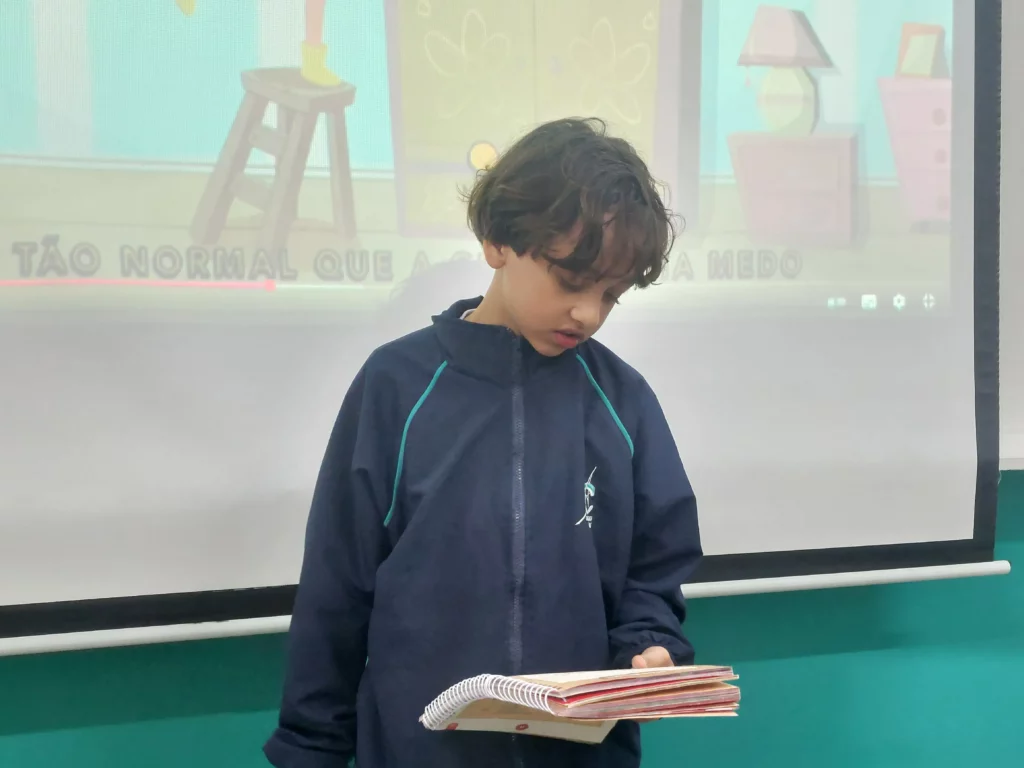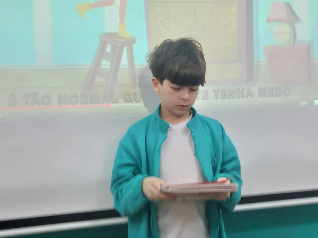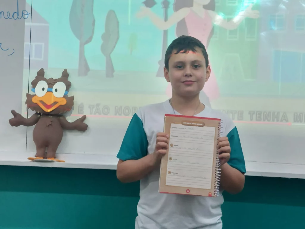Nas aulas de Valores e princípios, em que as turmas do 4º ano tiveram o material da Escola da Inteligência com a Professora Alessandra Castilho, houve a possibilidade de explorar as variadas emoções em propostas interessantes, tais como o Bairro Medo. Ouvir histórias, refletir sobre a emoção, verbalizar situações em que envolve o que sentem diante do medo, entre outras propostas contribuíram para que cada criança pudesse analisar as próprias atitudes, transformando-as gradativamente nas mais saudáveis possíveis no determinado momento.