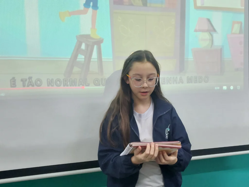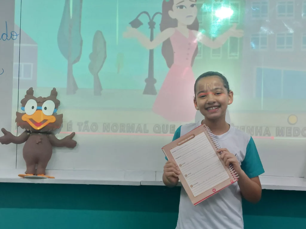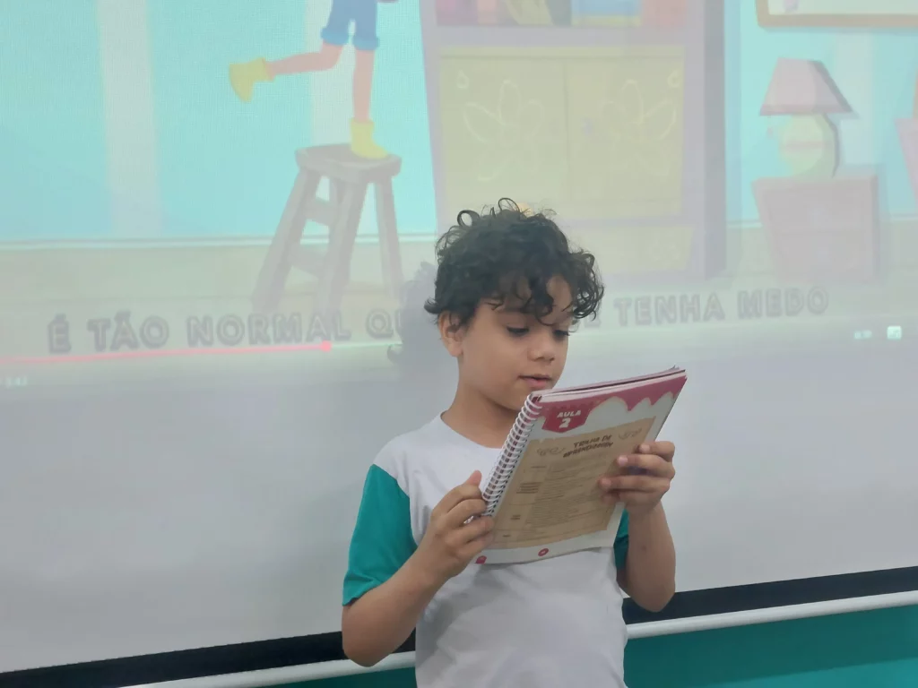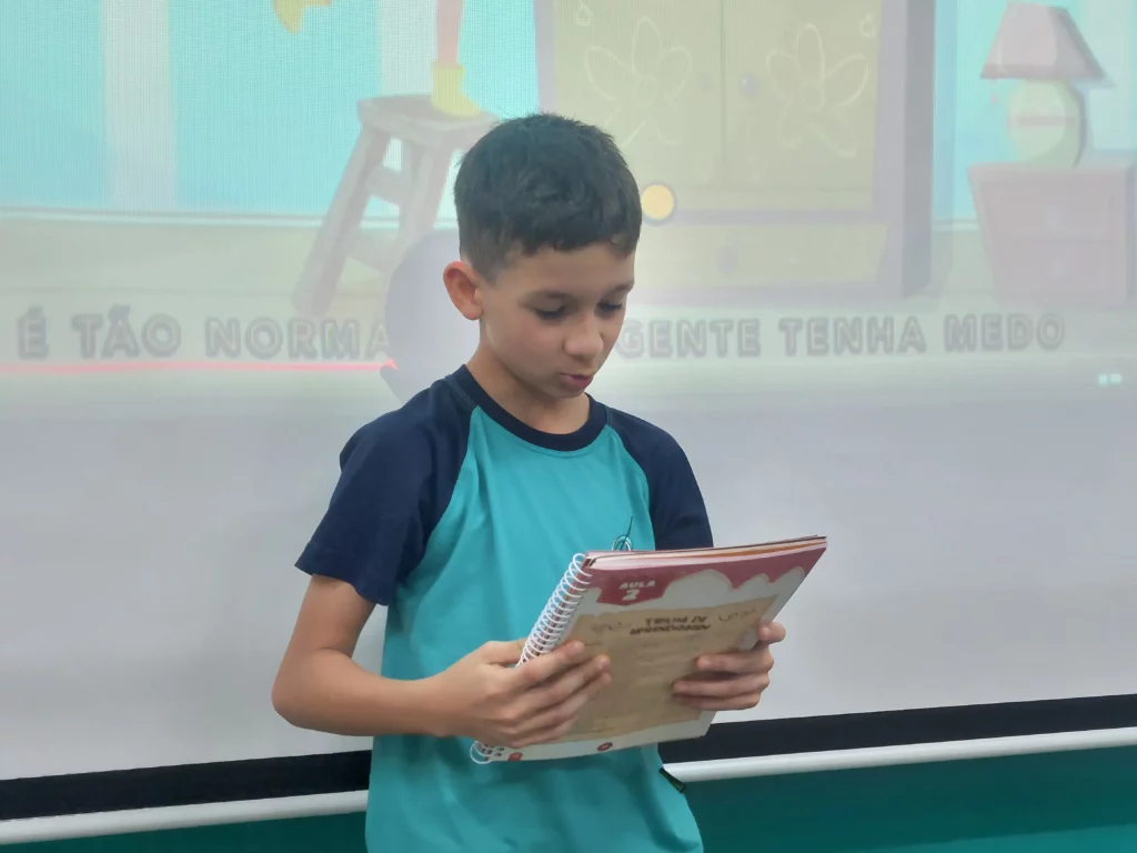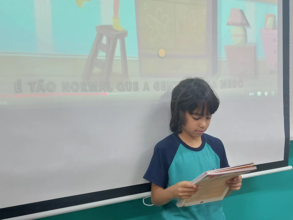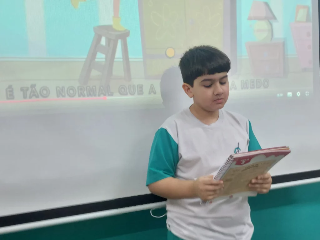 Nas aulas de Valores e princípios, em que as turmas do 4º ano tiveram o material da Escola da Inteligência com a Professora Alessandra Castilho, houve a possibilidade de explorar as variadas emoções em propostas interessantes, tais como o Bairro Medo. Ouvir histórias, refletir sobre a emoção, verbalizar situações em que envolve o que sentem diante do medo, entre outras propostas contribuíram para que cada criança pudesse analisar as próprias atitudes, transformando-as gradativamente nas mais saudáveis possíveis no determinado momento.