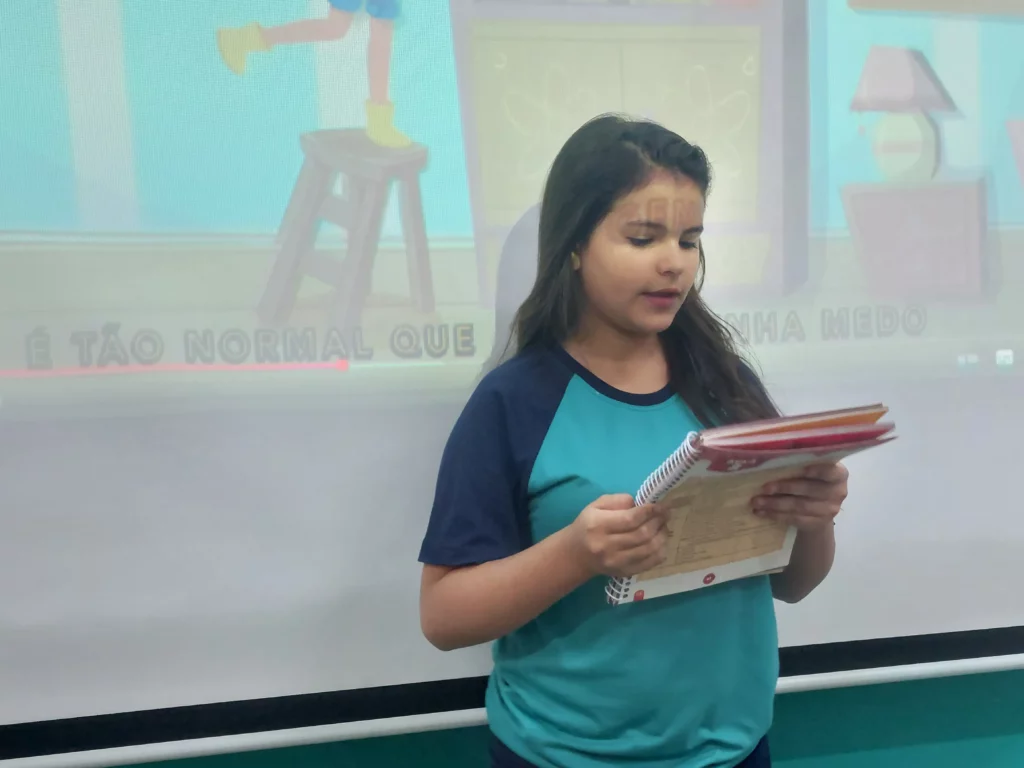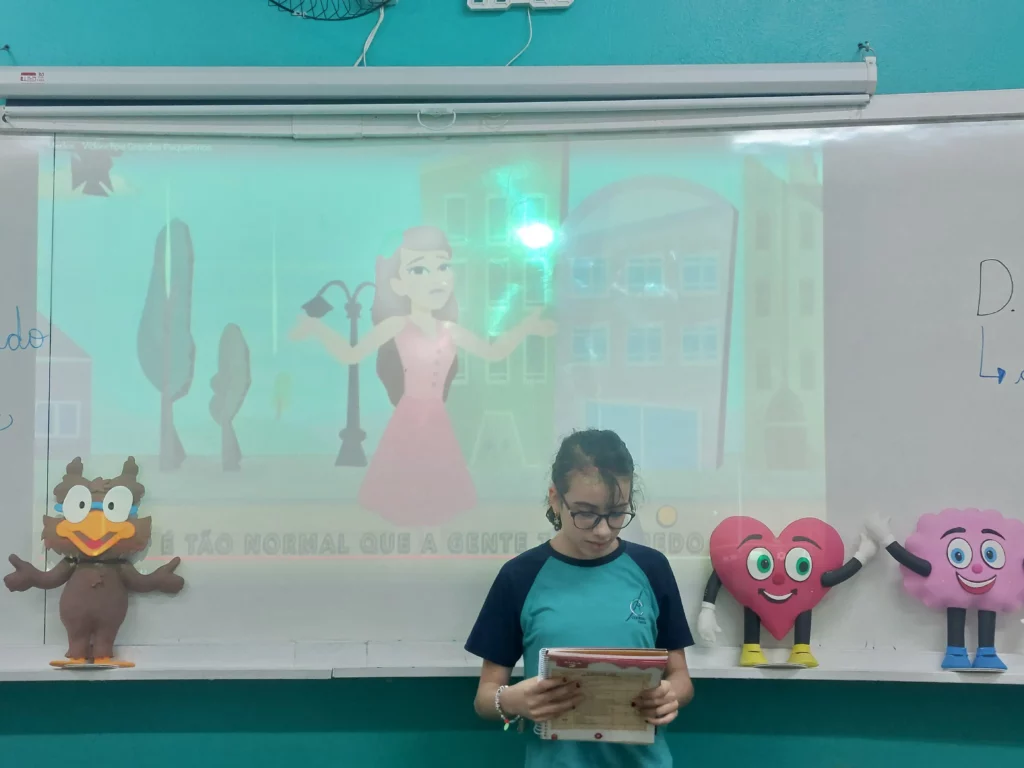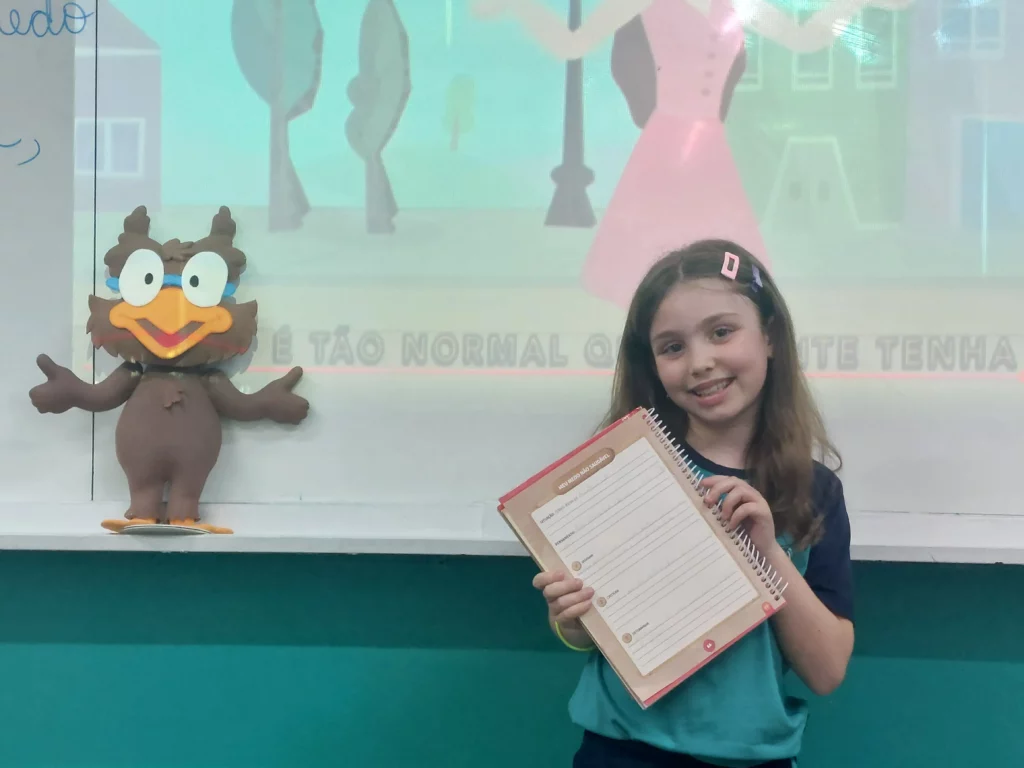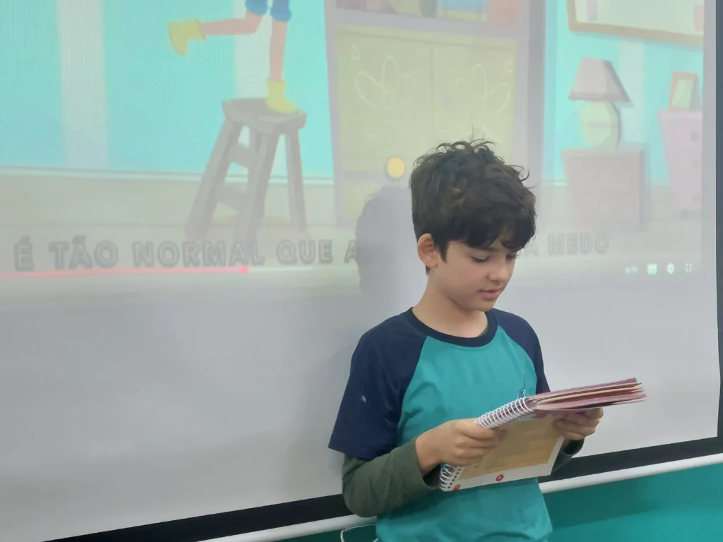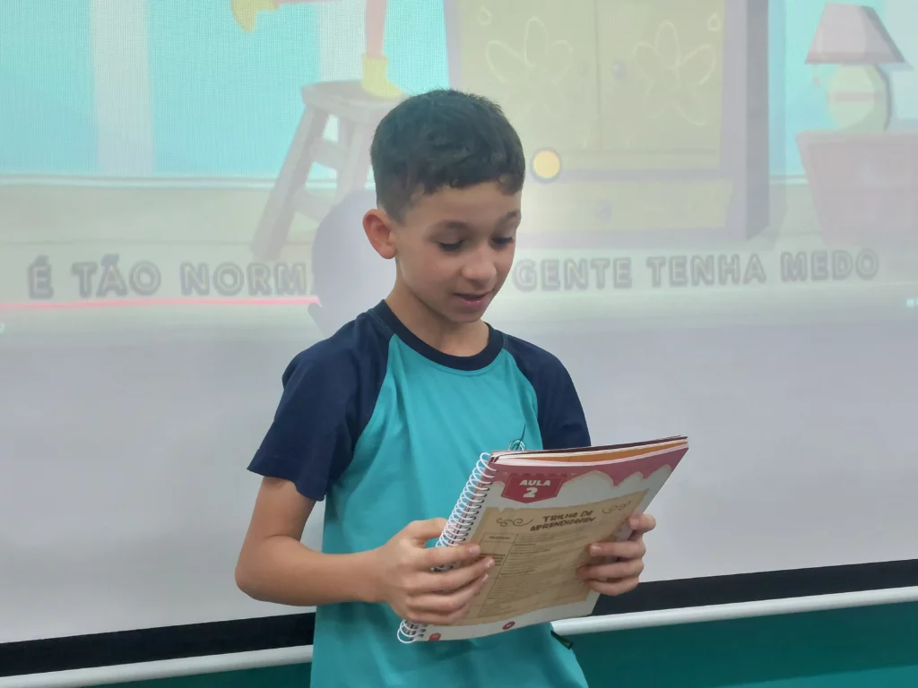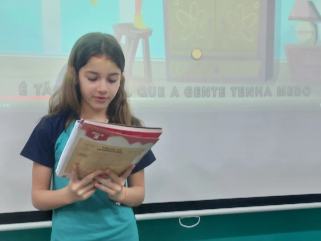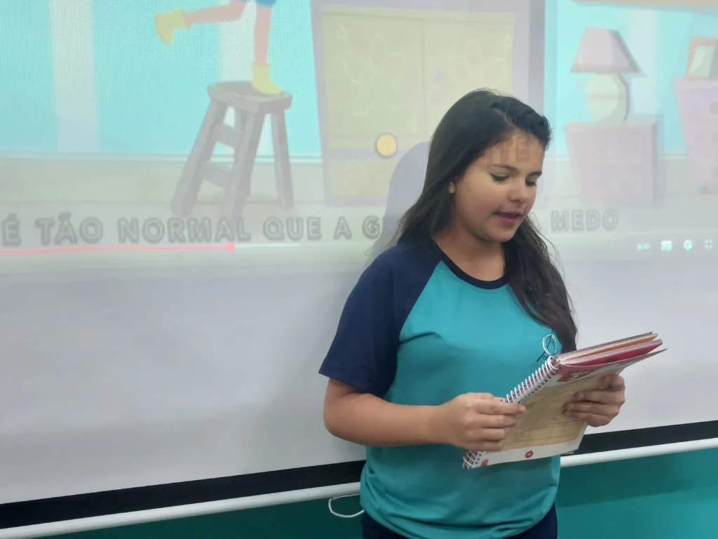 Nas aulas de Valores e princípios, em que as turmas do 4º ano tiveram o material da Escola da Inteligência com a Professora Alessandra Castilho, houve a possibilidade de explorar as variadas emoções em propostas interessantes, tais como o Bairro Medo. Ouvir histórias, refletir sobre a emoção, verbalizar situações em que envolve o que sentem diante do medo, entre outras propostas contribuíram para que cada criança pudesse analisar as próprias atitudes, transformando-as gradativamente nas mais saudáveis possíveis no determinado momento.