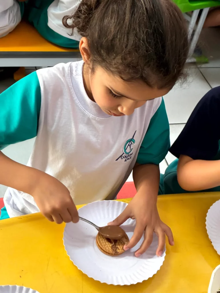 Na semana da criança, a turminha do período integral fez uma culinária especial deliciosa de alfajor com as Professoras Rebeca e Noemi! Ficou com água na boca?
