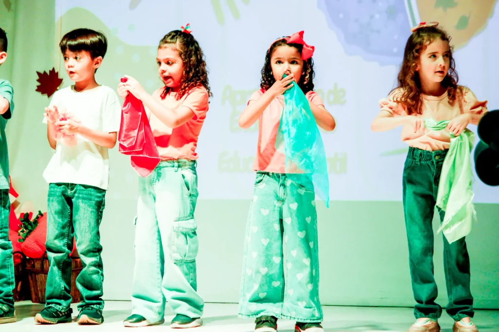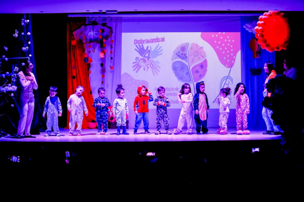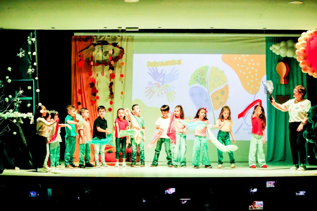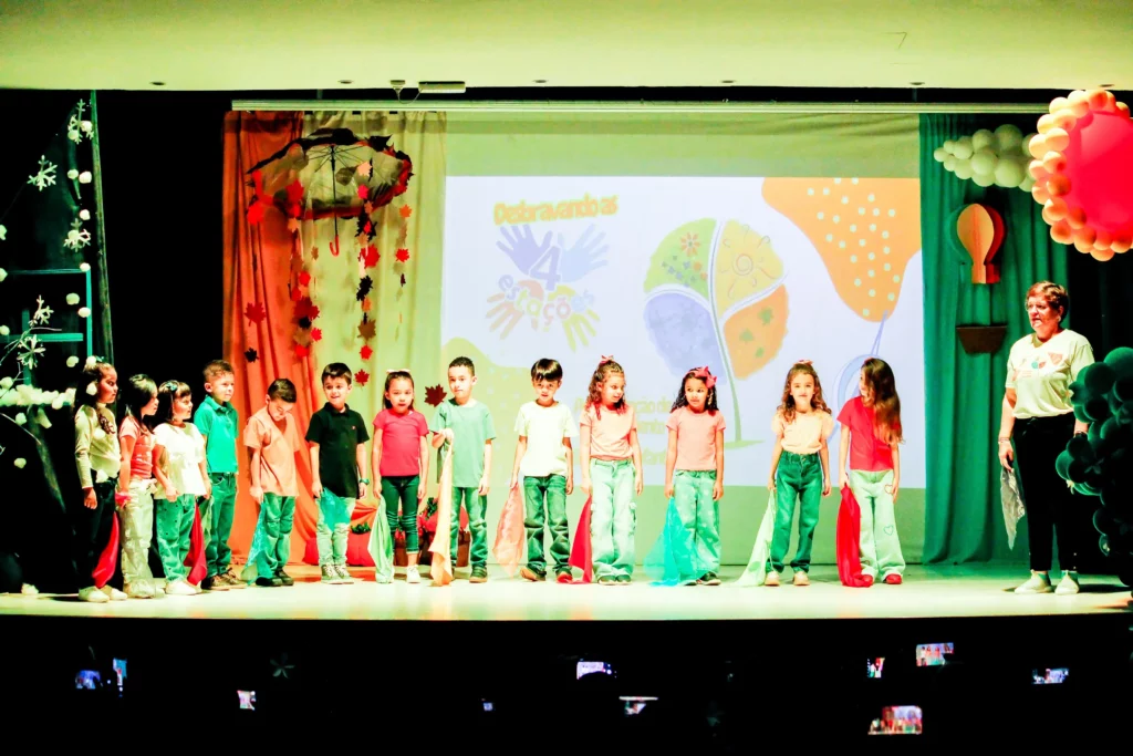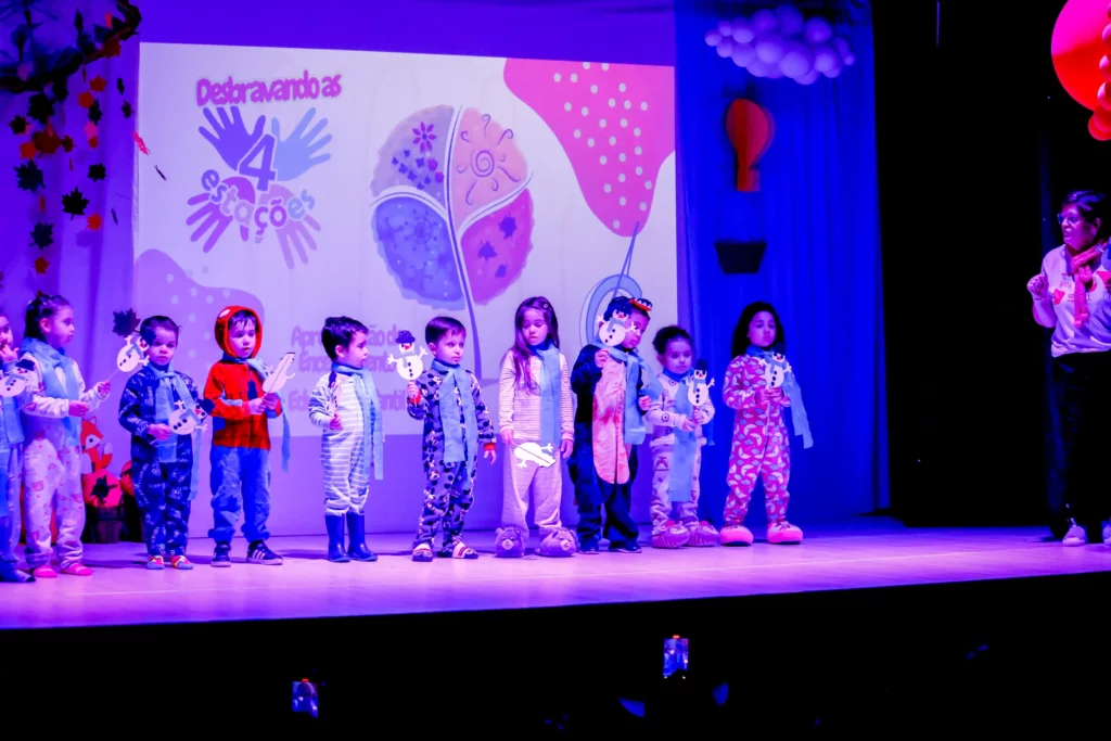 A apresentação de encerramento do ano de 2025 da Educação Infantil aconteceu no dia 08 de novembro e teve como tema “As quatro estações”. Os alunos brilharam nas apresentações de palco e entregaram ao público exposições e trabalhos riquíssimos para apreciação! Nossos pequenos deram um verdadeiro show!